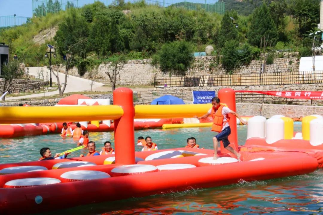 24日下午,大家來(lái)到了“水上沖關(guān)”拓展場(chǎng)地。水上沖關(guān)——層層關(guān)卡,挑戰(zhàn)無(wú)限,既考驗(yàn)各支戰(zhàn)隊(duì)的單兵作戰(zhàn)能力,又需要全隊(duì)通力合作,闖關(guān)隊(duì)員一馬當(dāng)先,保護(hù)隊(duì)員奮力抵擋來(lái)自其他戰(zhàn)隊(duì)的攻擊,唯有眾志成城,方能抵達(dá)彼岸。大家在山林之間放松心情,碧水之上釋放壓力,以最飽滿的熱情迎接下半年的挑戰(zhàn)。