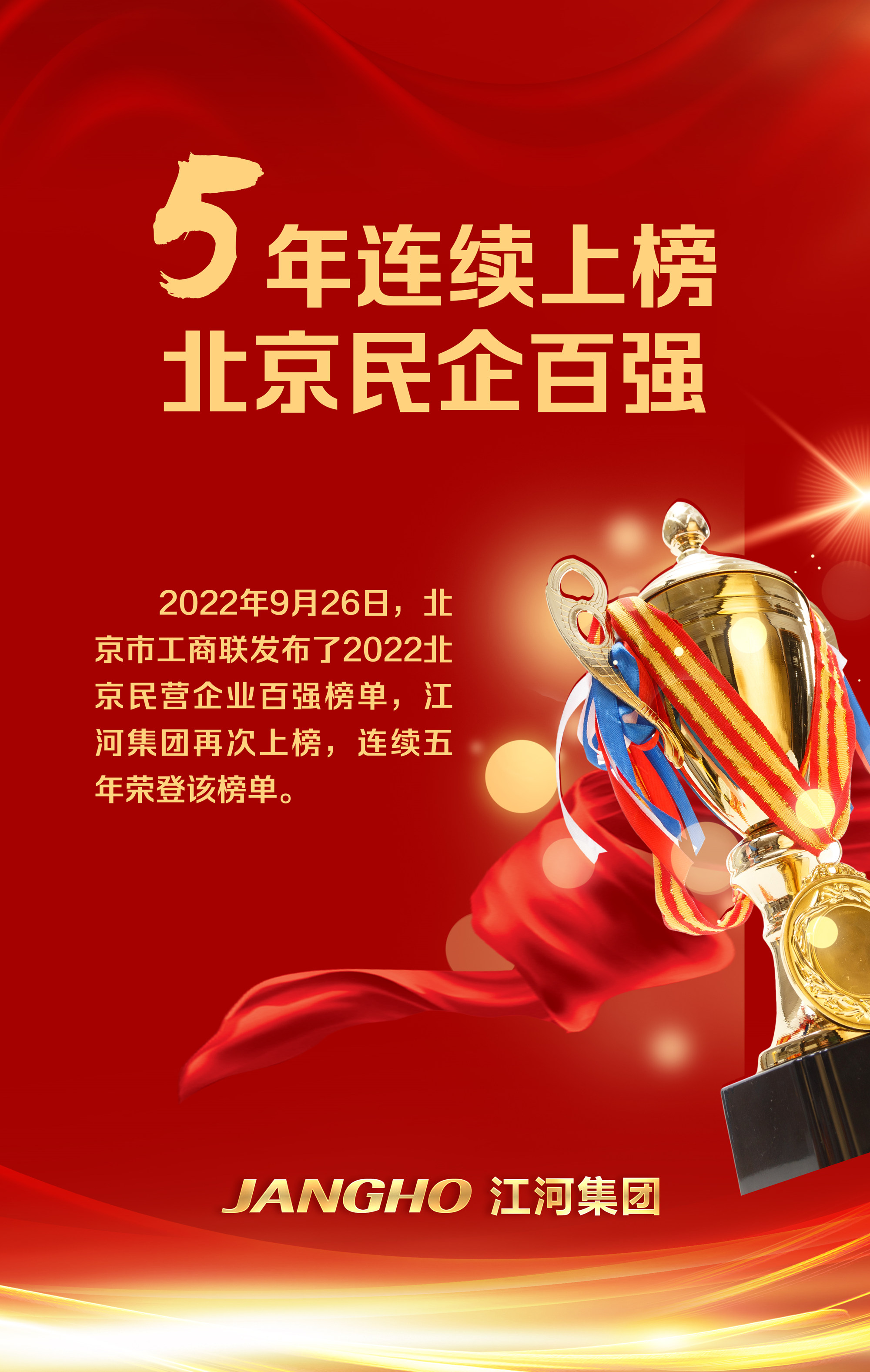 喜報(bào) 江河集團(tuán)連續(xù)五年榮登北京民企百?gòu)?qiáng)榜